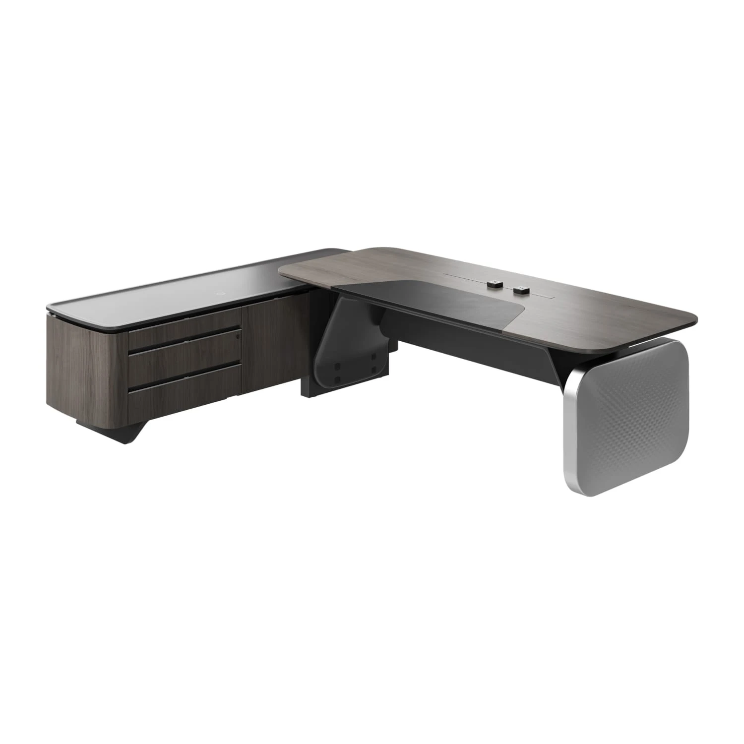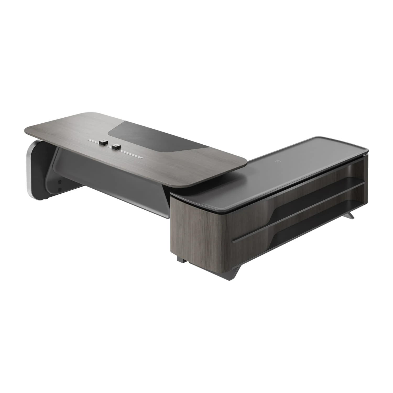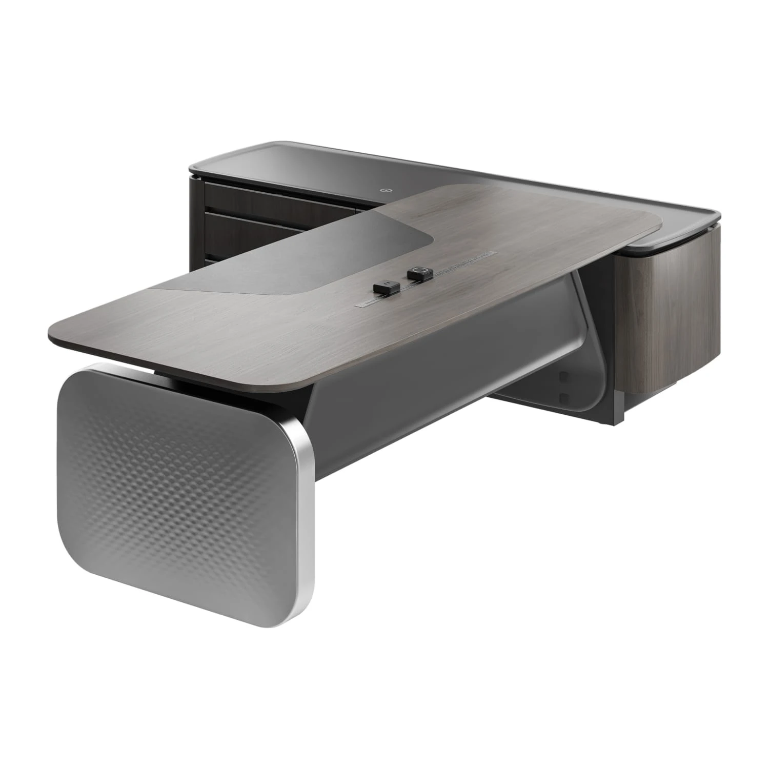 Стол руководителя на опорной сервисной тумбе - левый 2480x2240x750-1150 Atlas (Sun)