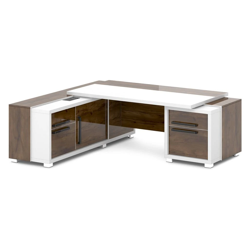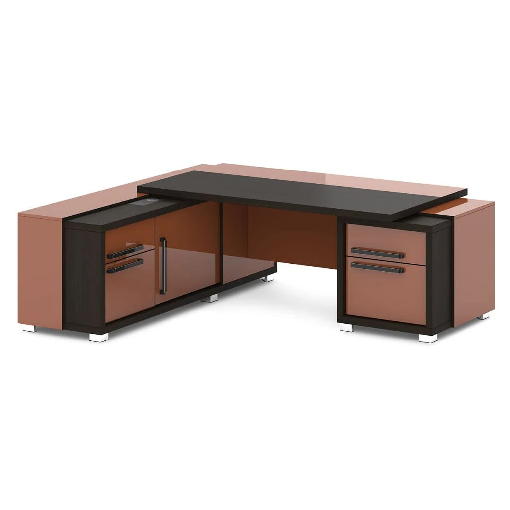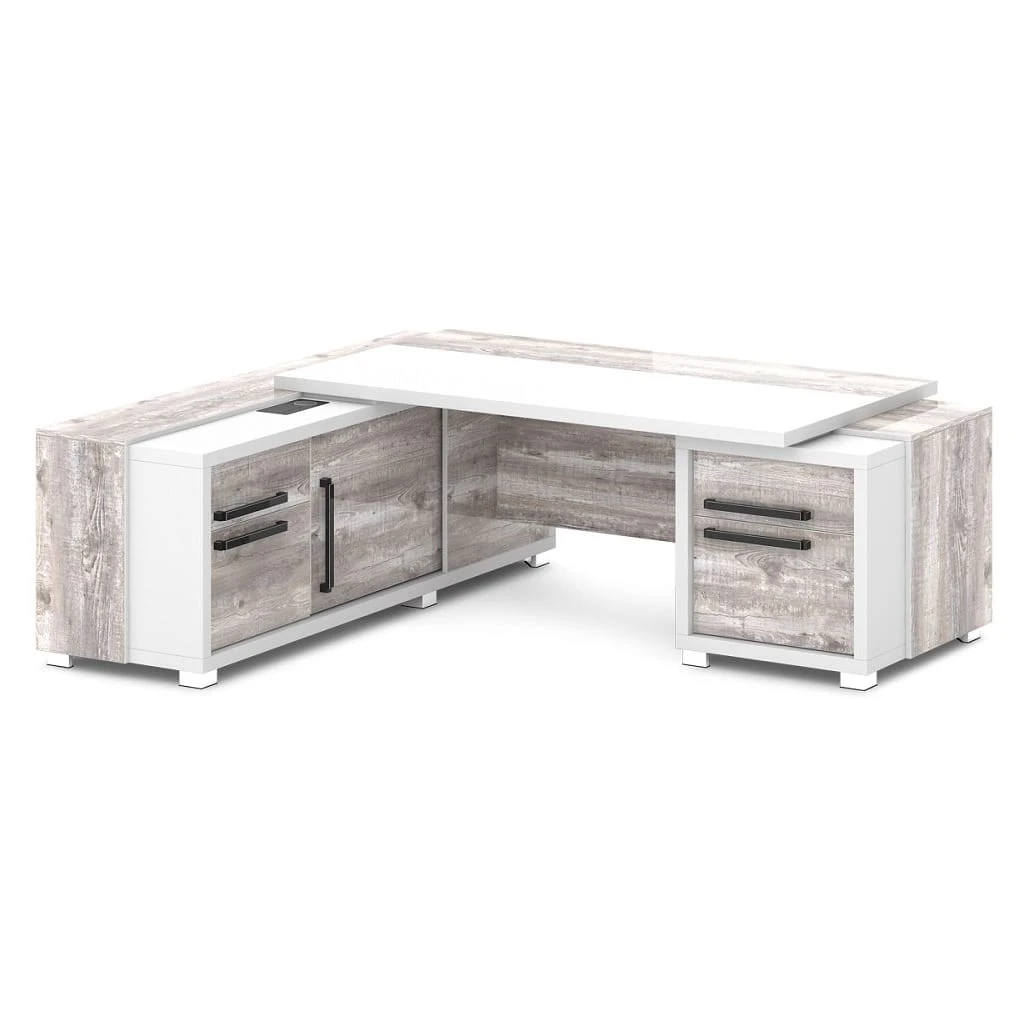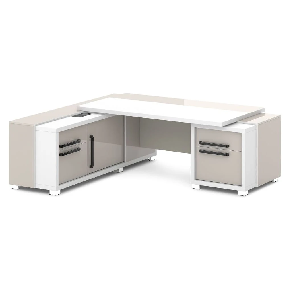 Стол с тумбой и греденцией (беспроводная зарядка, 2xUSB, розетка) 2270х2016х750 Грейс / Grace