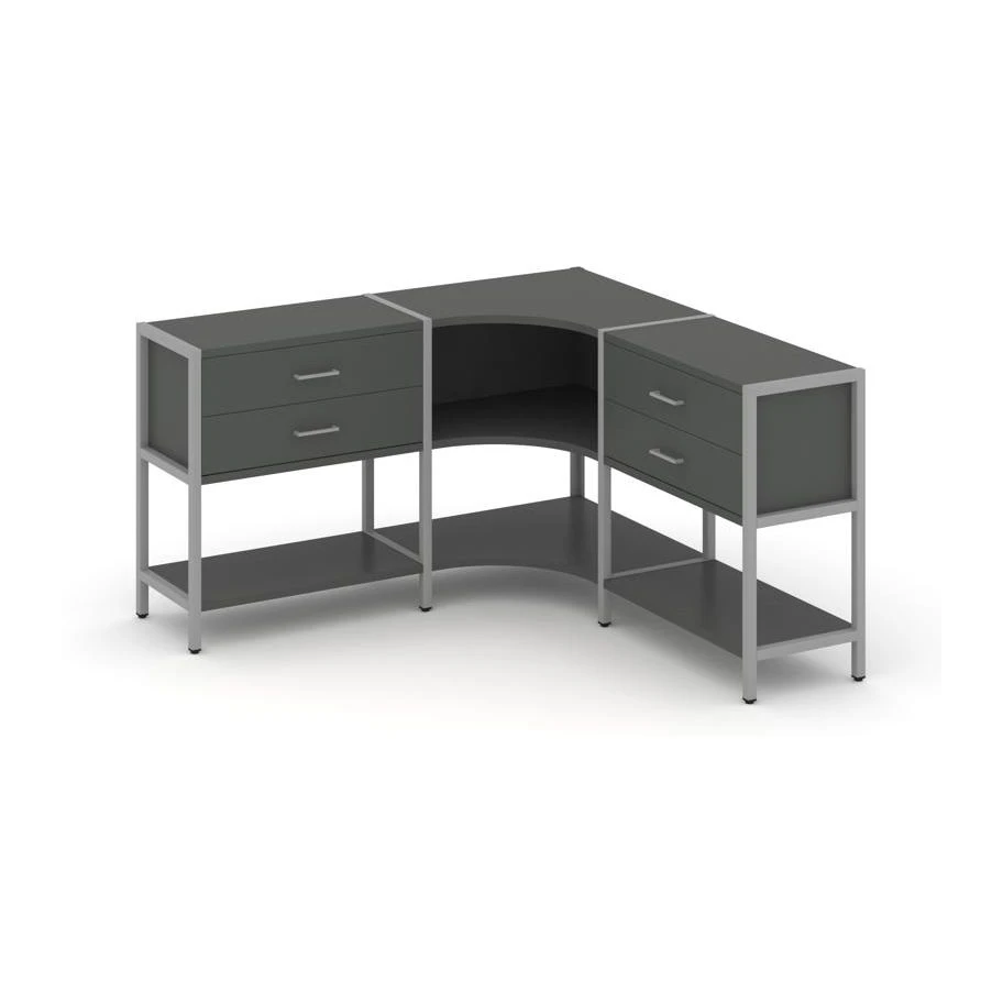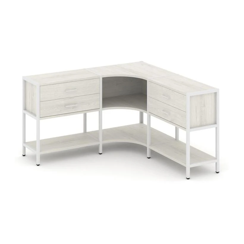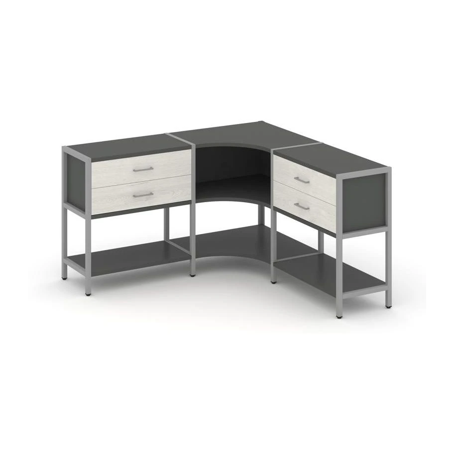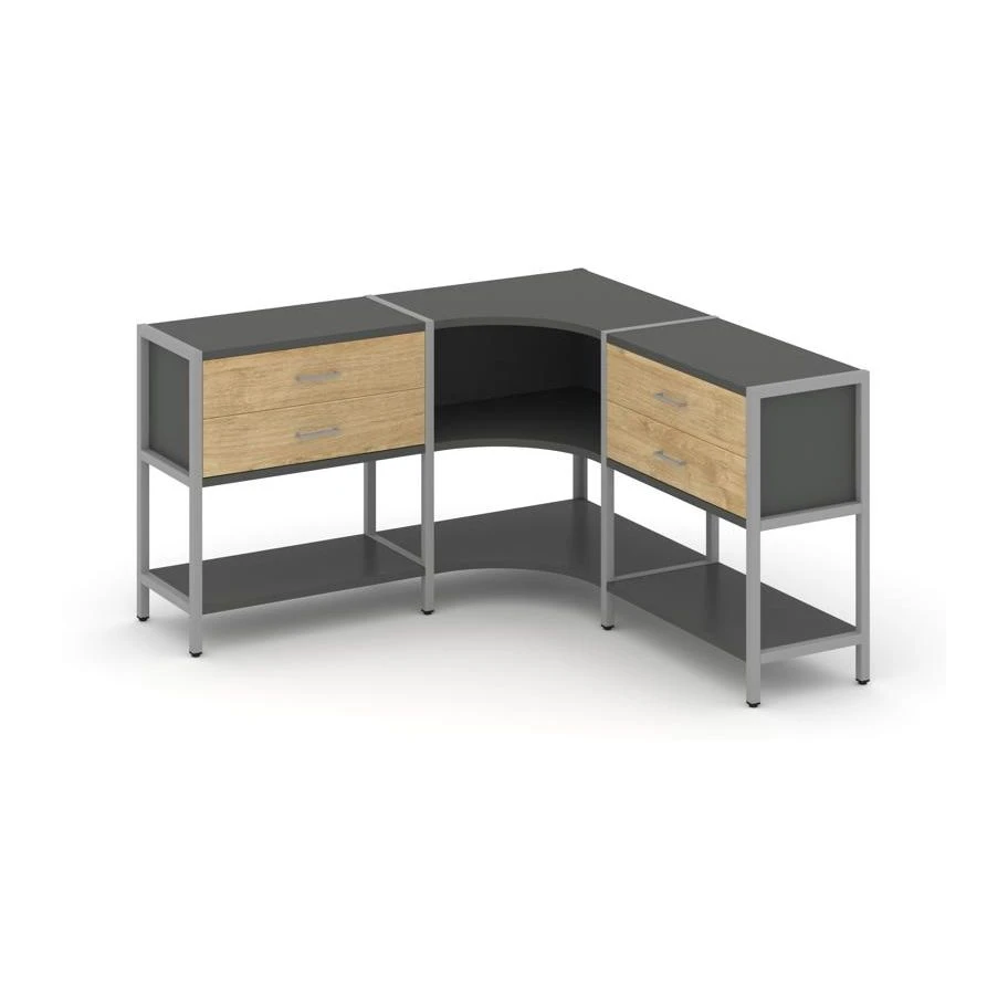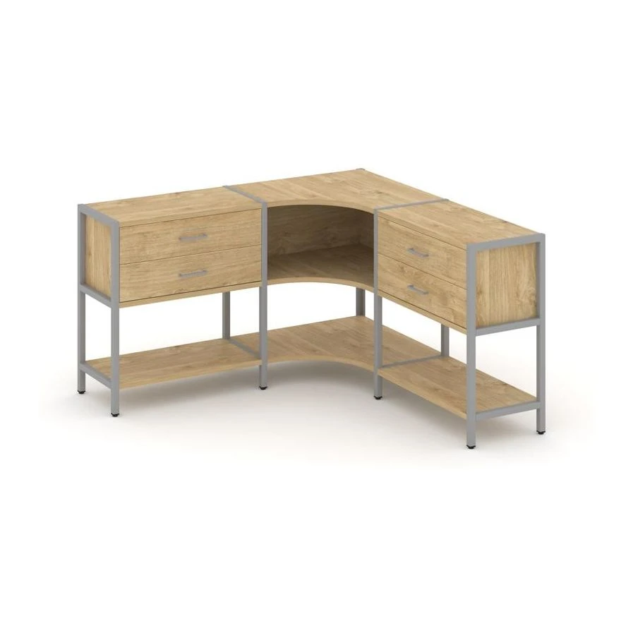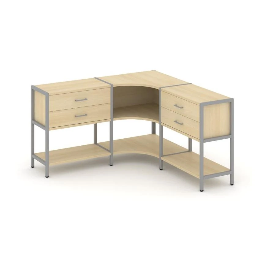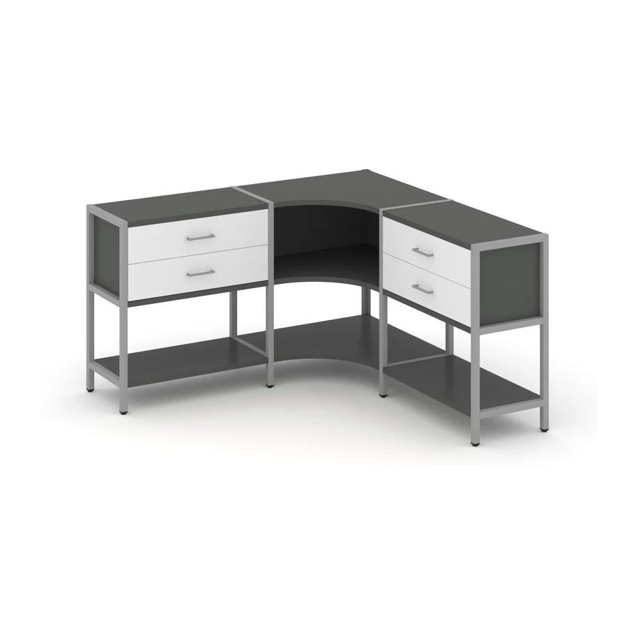 Трехсекционный угловой стеллаж двухярусный с ящиками 1590х1590х879 Шелф Систем / Shelf System