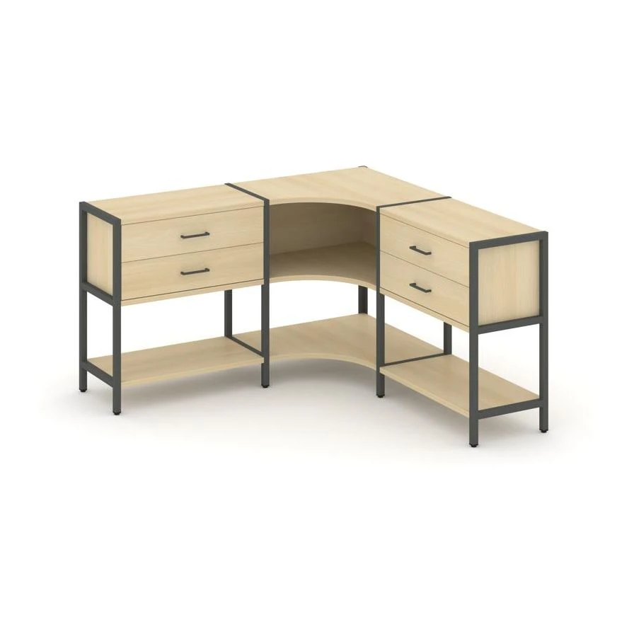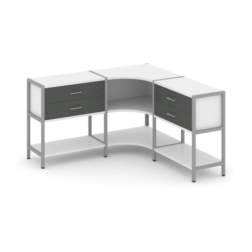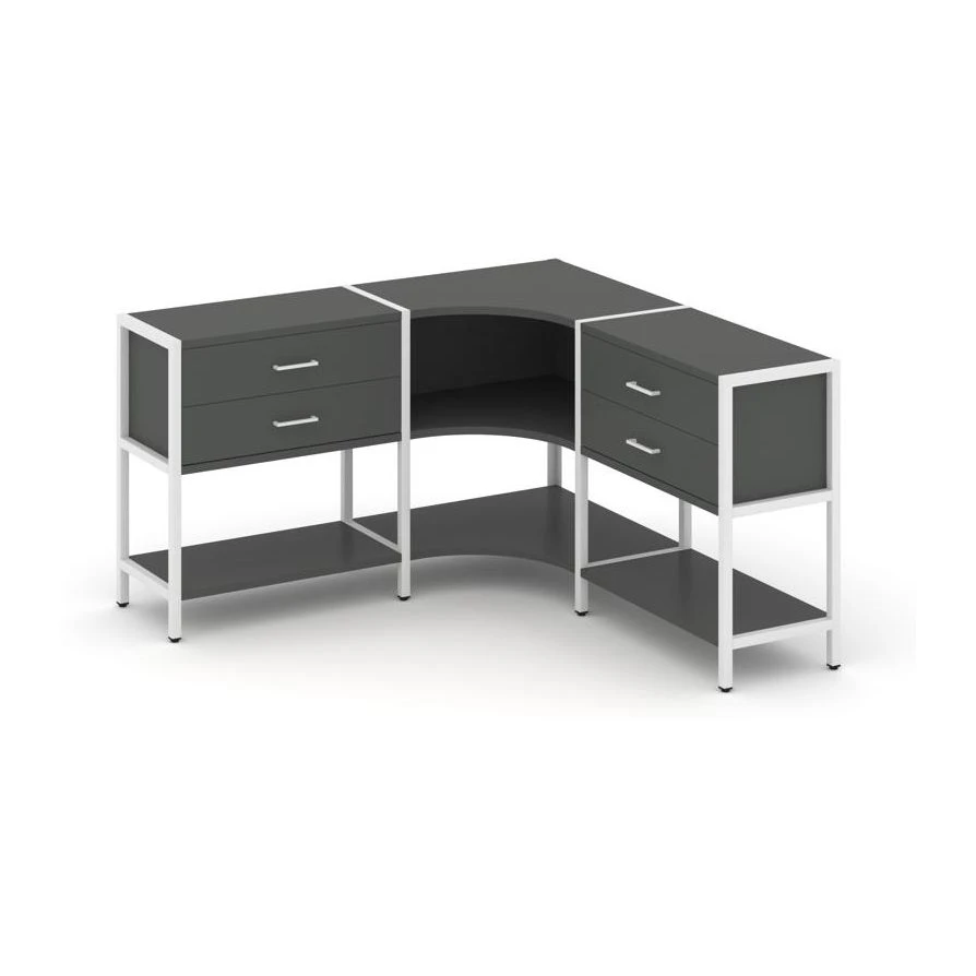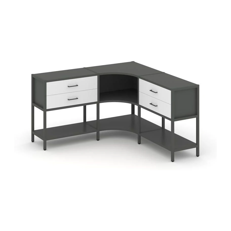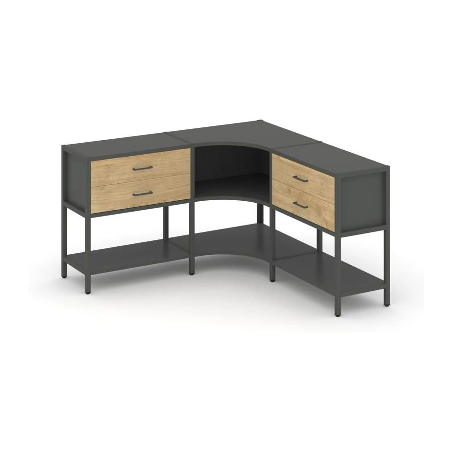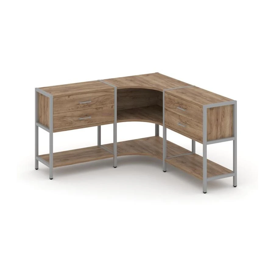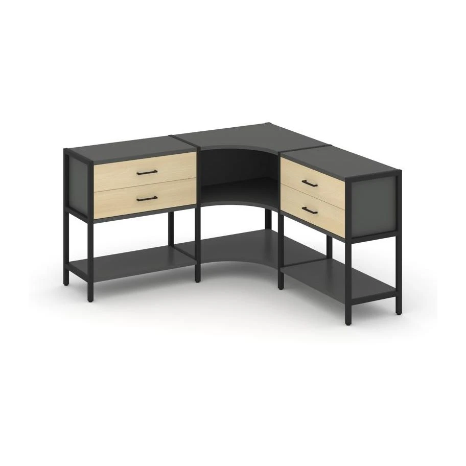 Трехсекционный угловой стеллаж двухярусный с ящиками 1590х1590х879 Шелф Систем / Shelf System