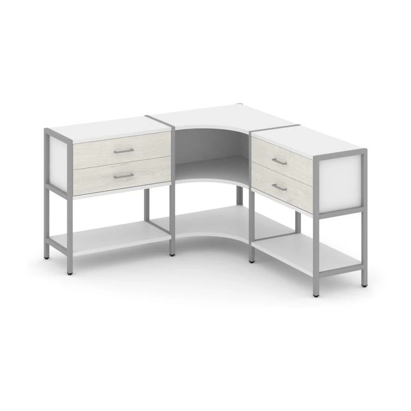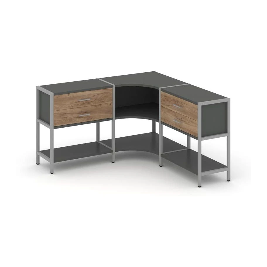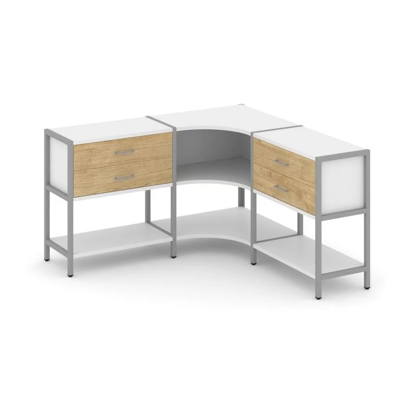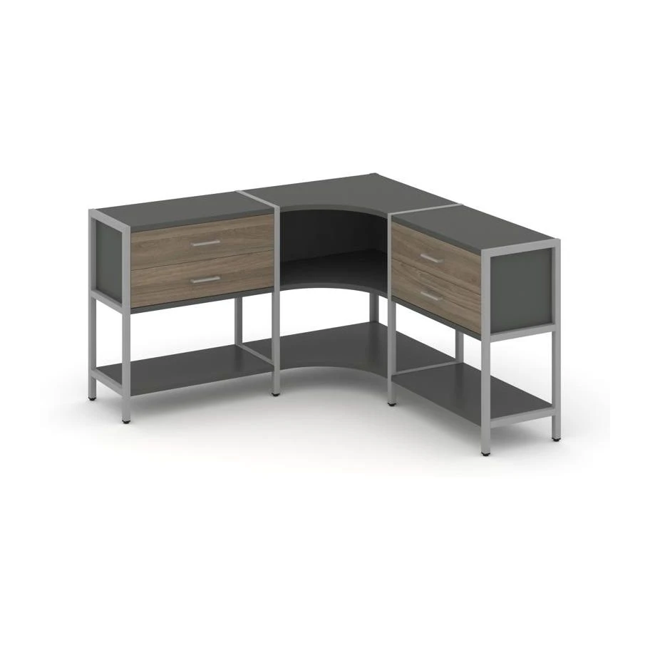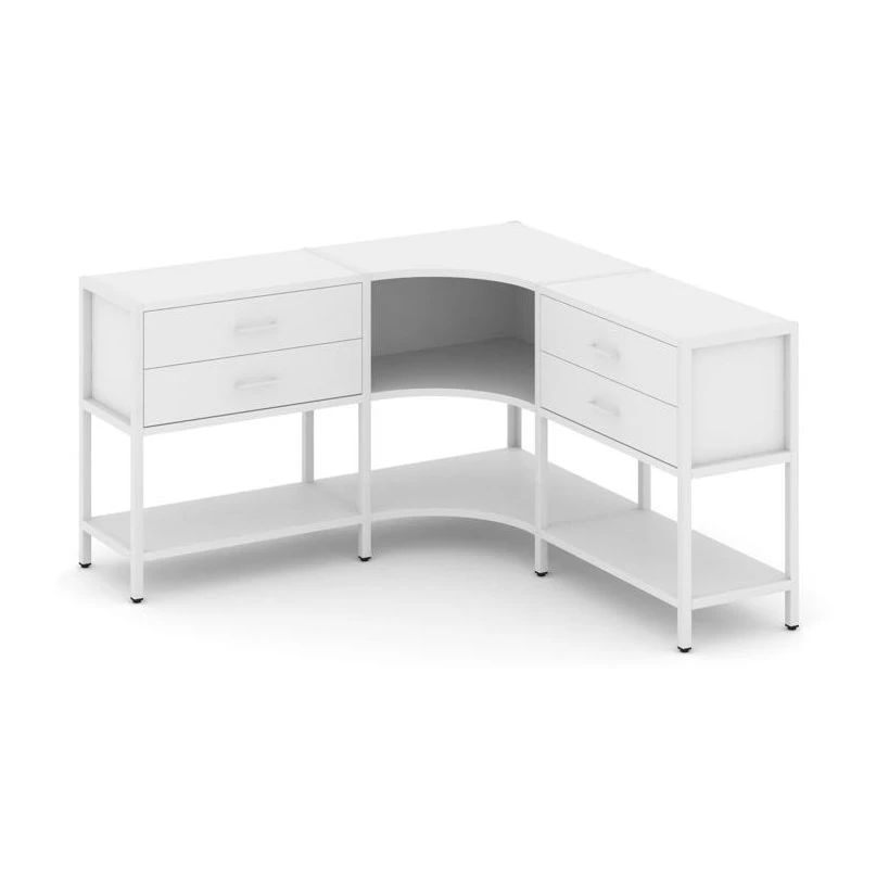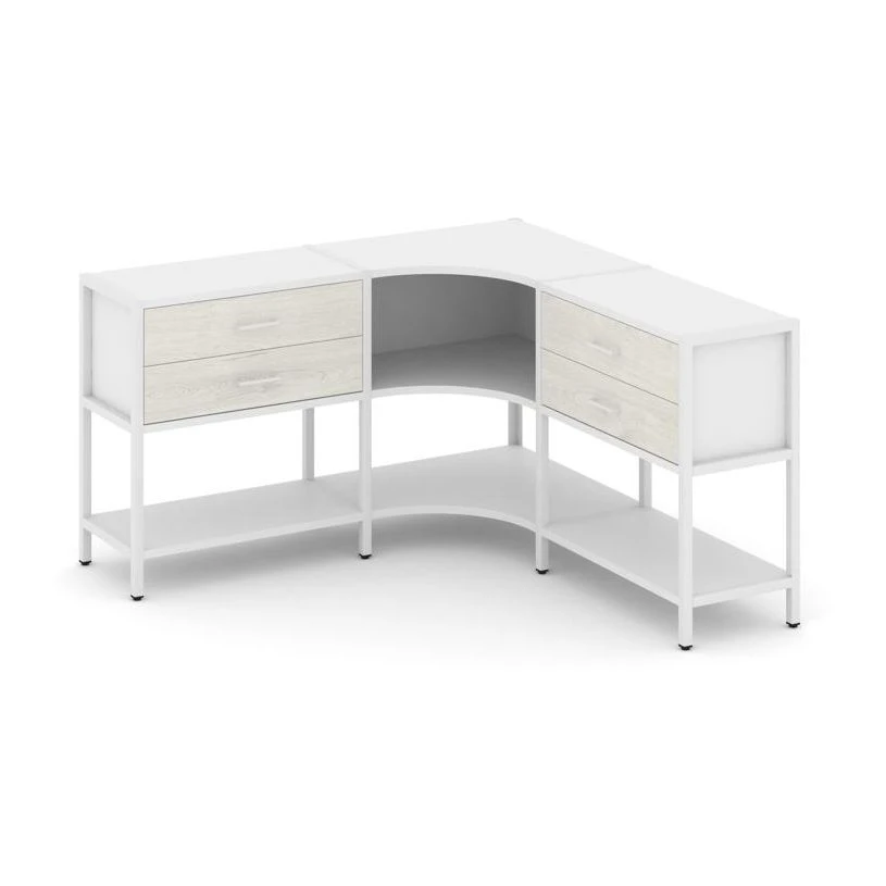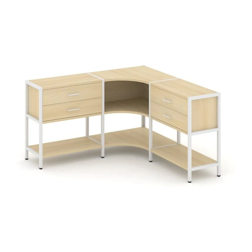 Трехсекционный угловой стеллаж двухярусный с ящиками 1590х1590х879 Шелф Систем / Shelf System