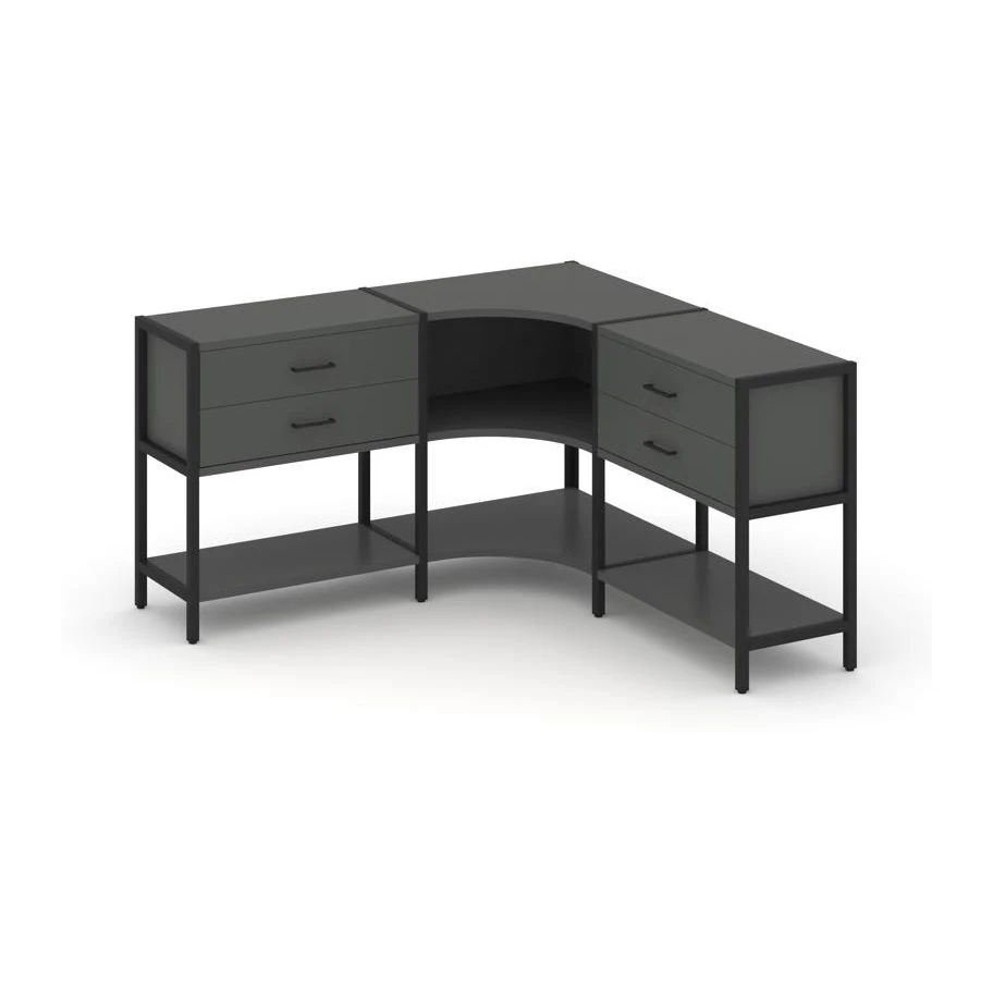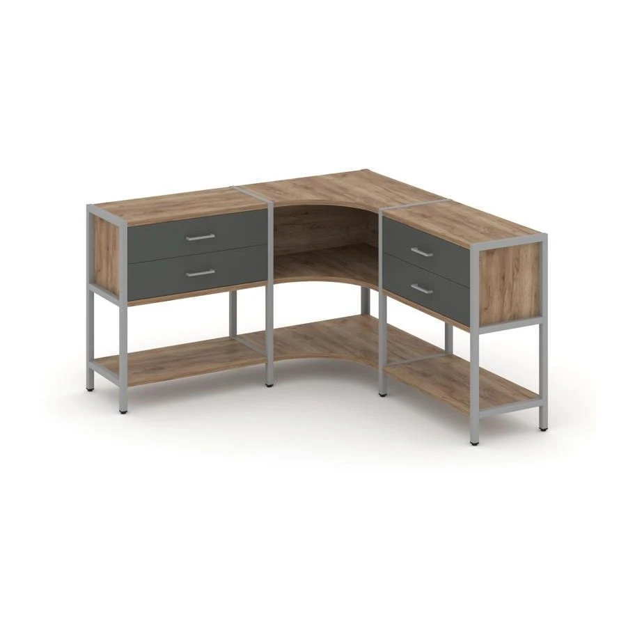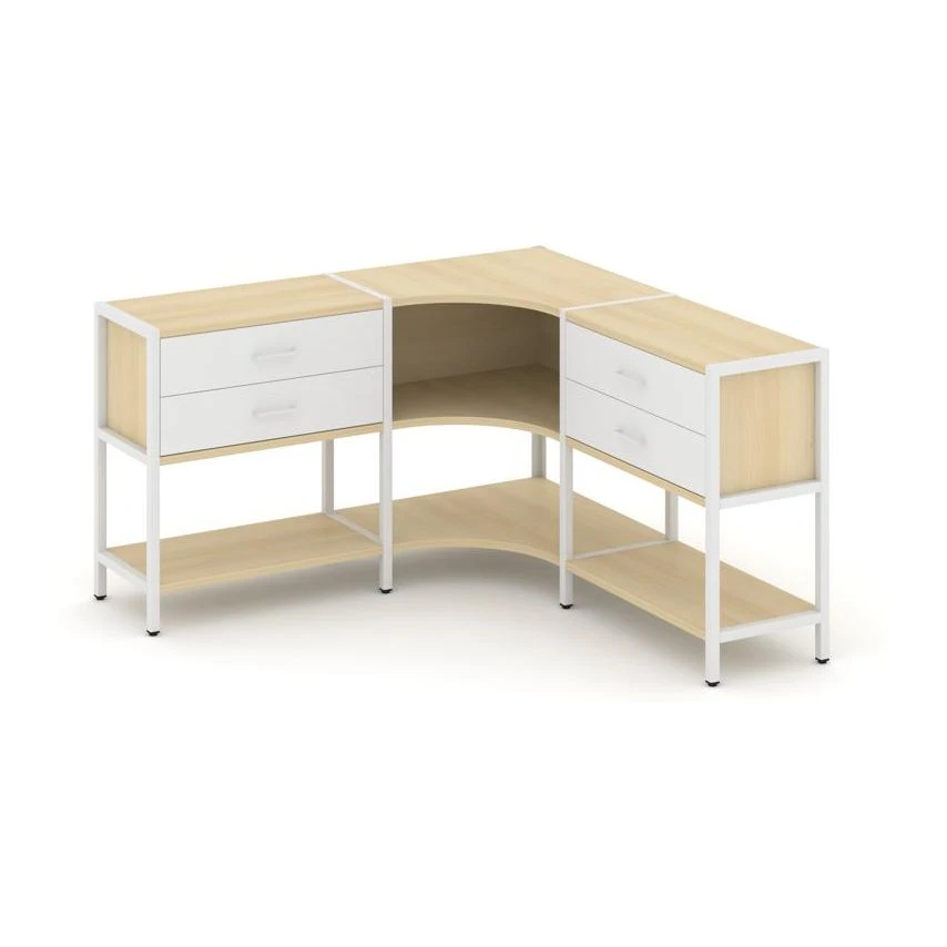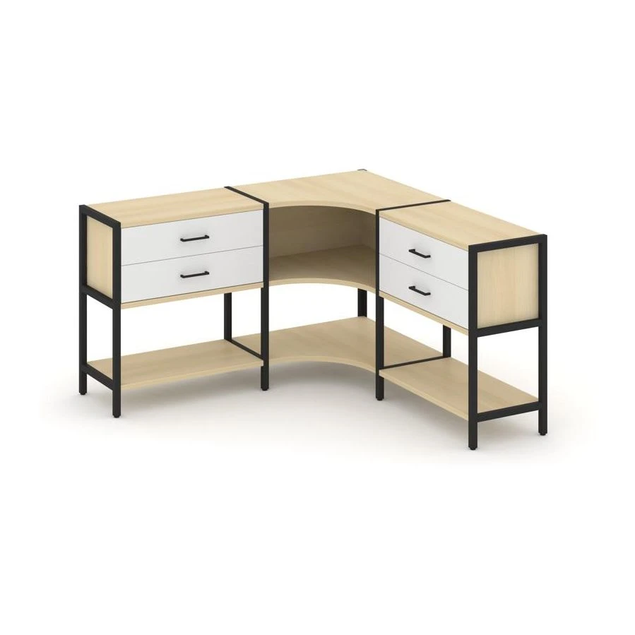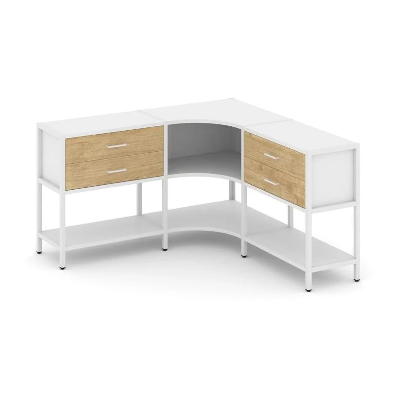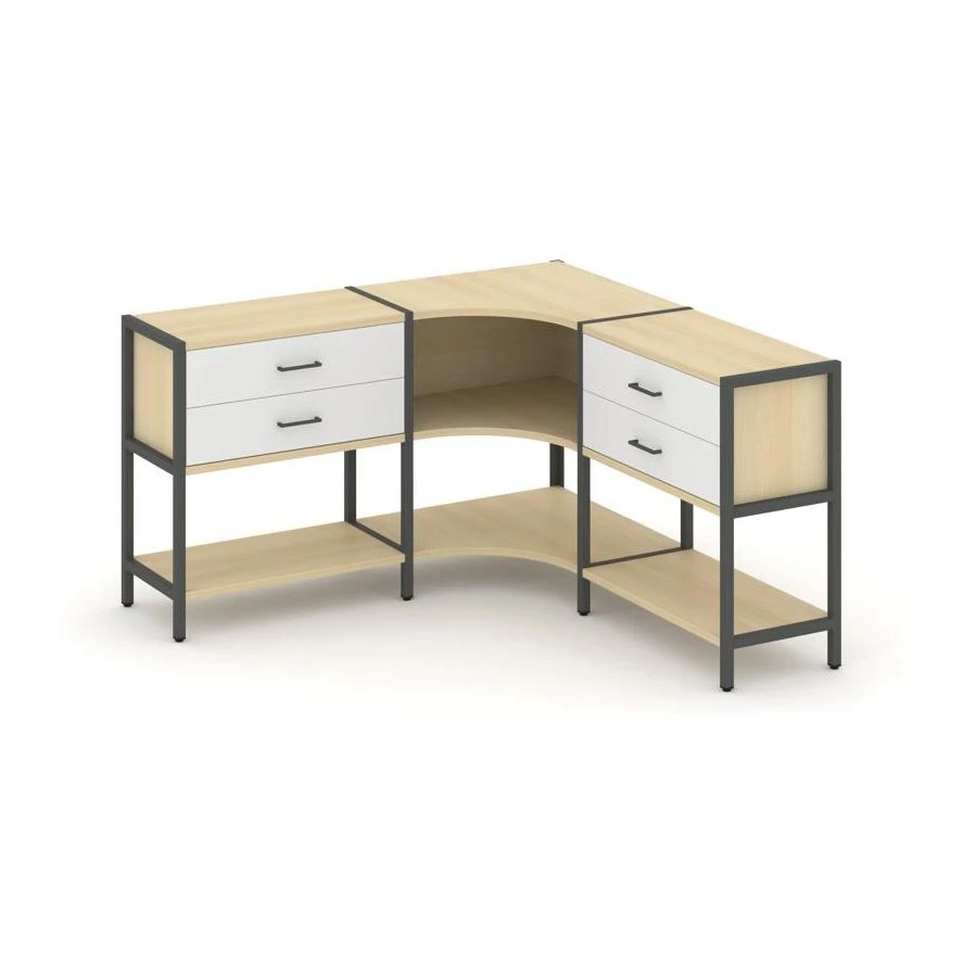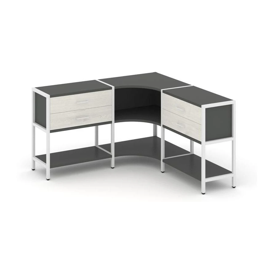 Трехсекционный угловой стеллаж двухярусный с ящиками 1590х1590х879 Шелф Систем / Shelf System
