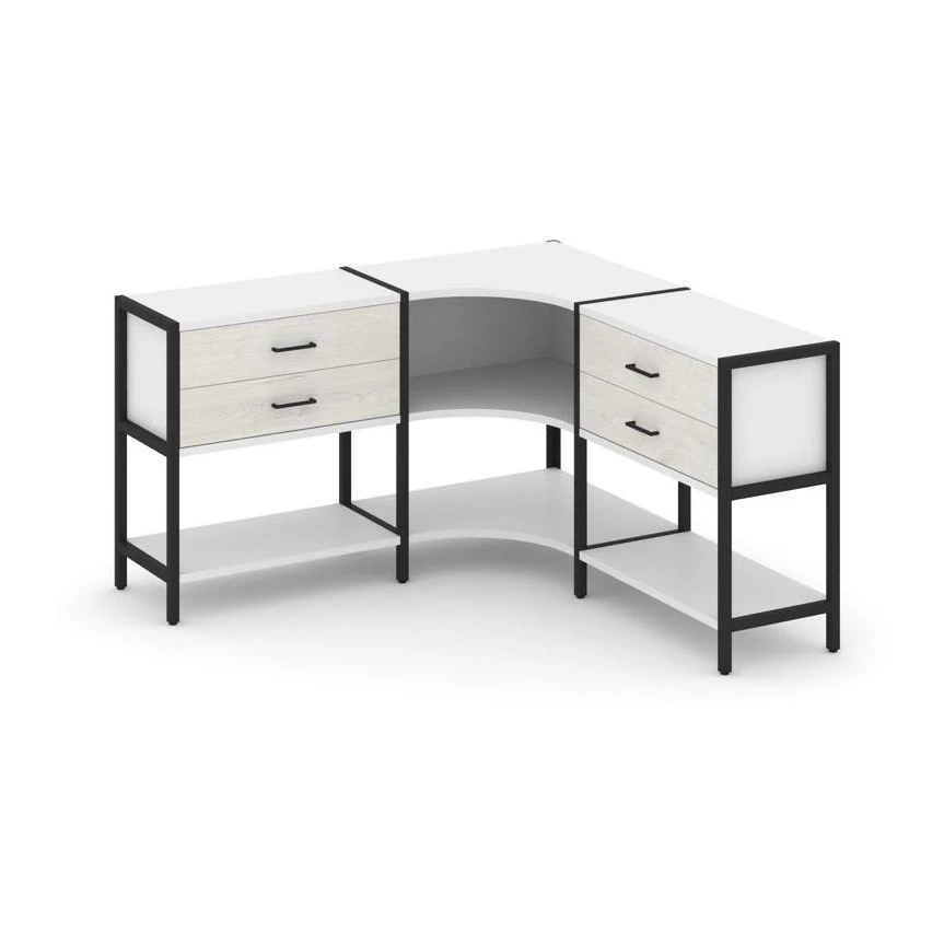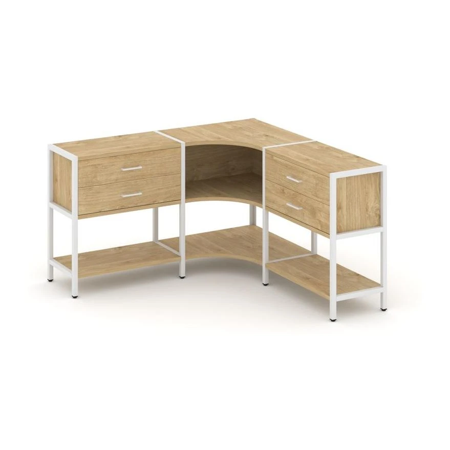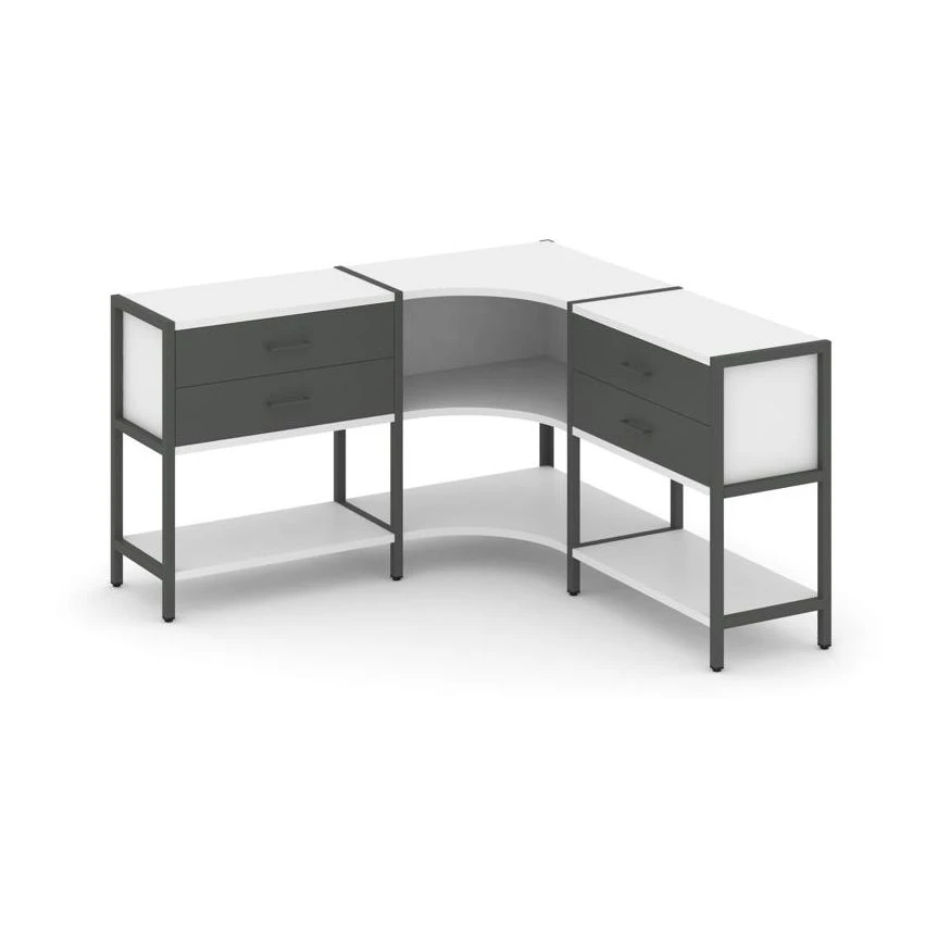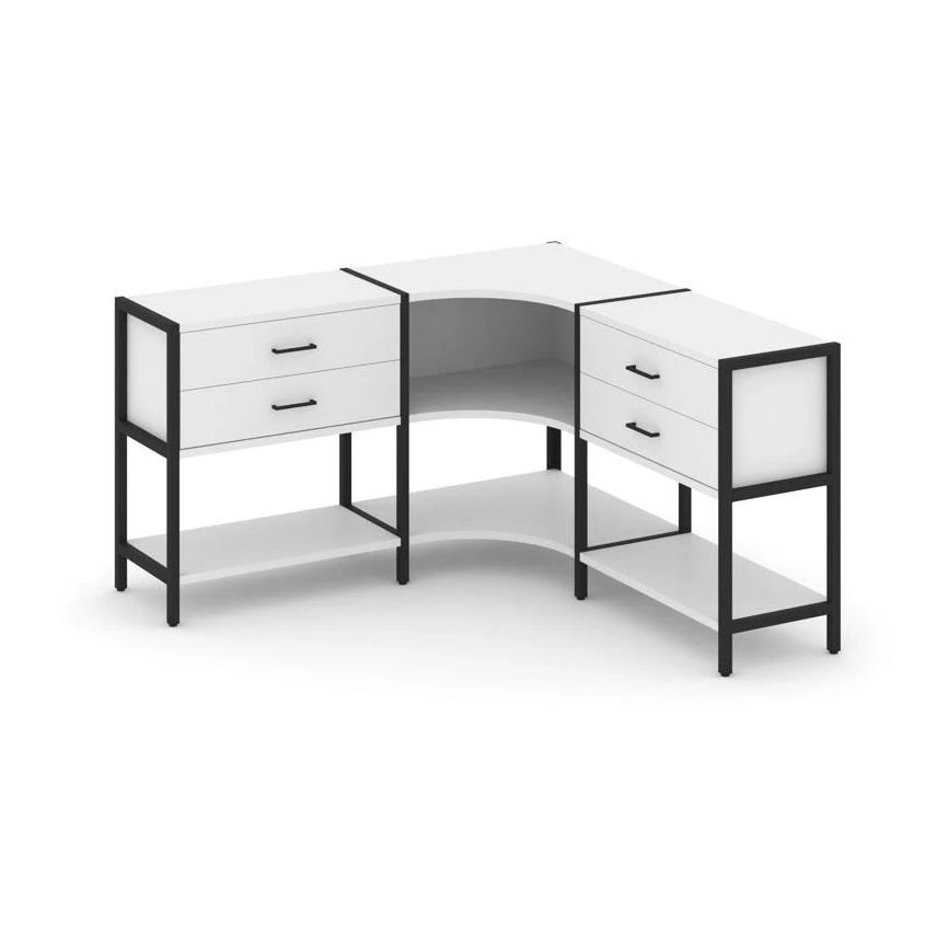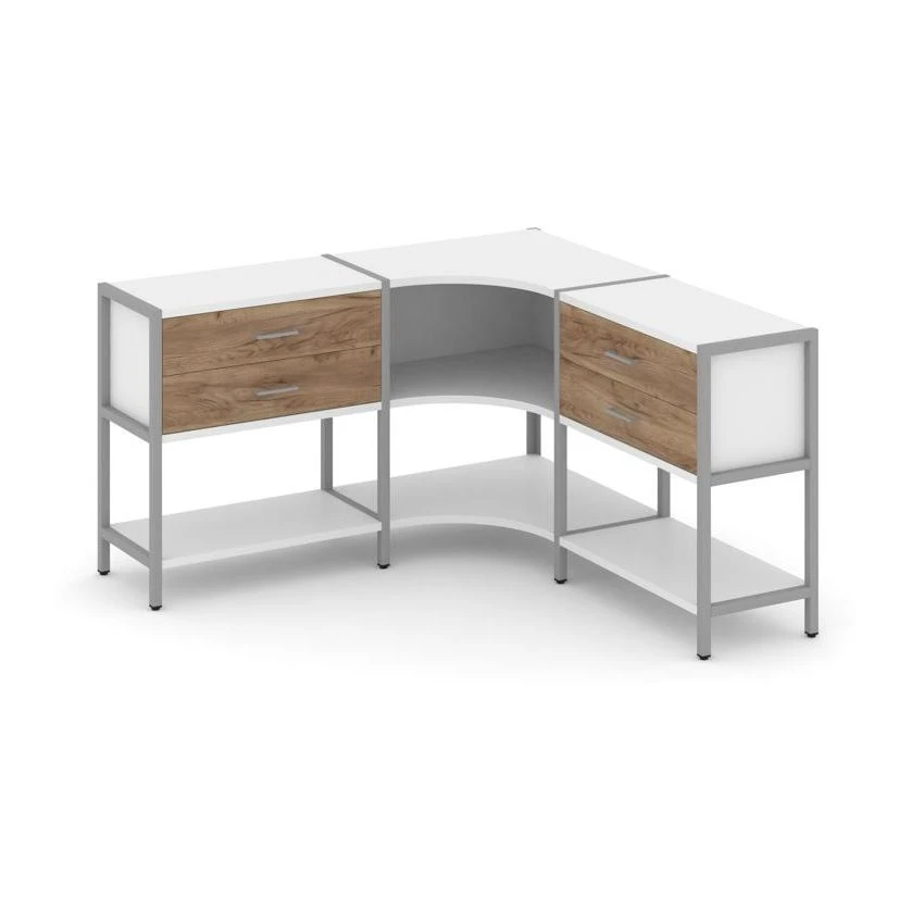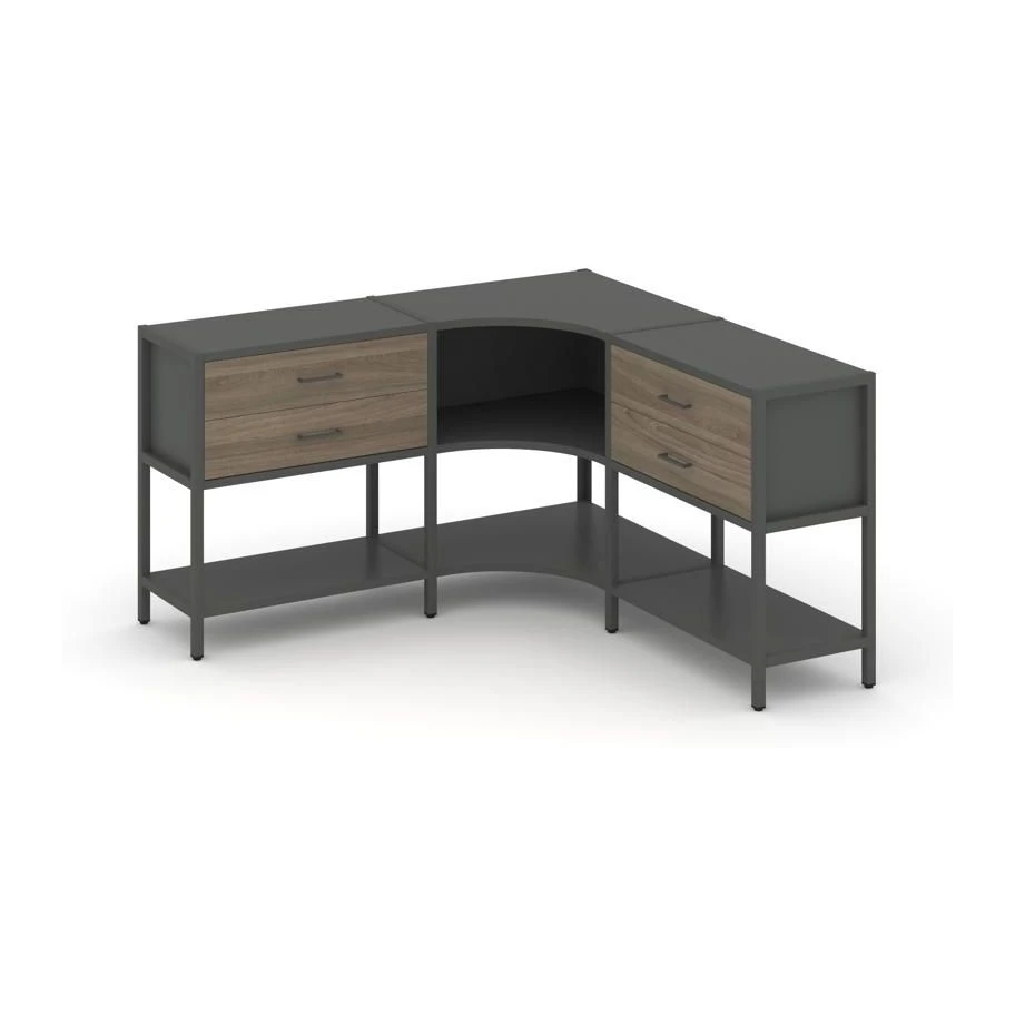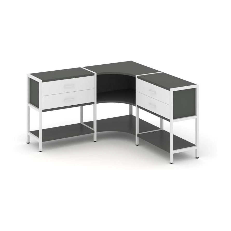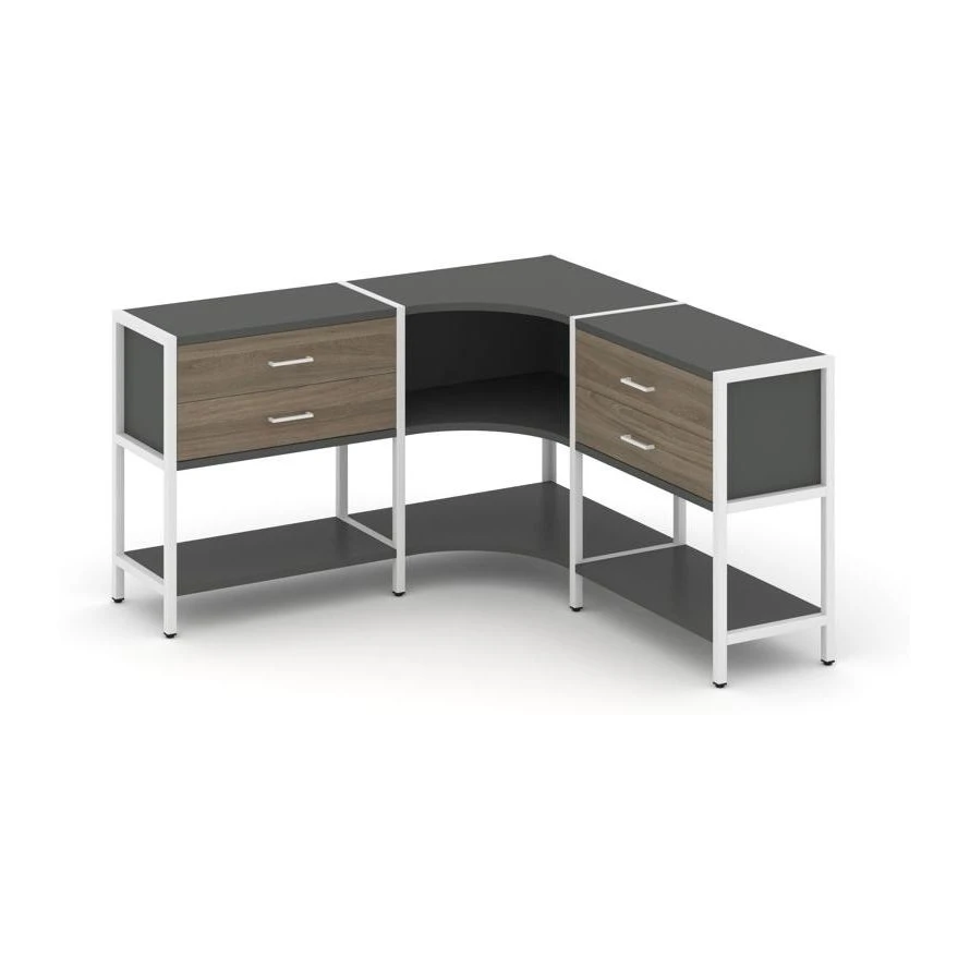 Трехсекционный угловой стеллаж двухярусный с ящиками 1590х1590х879 Шелф Систем / Shelf System