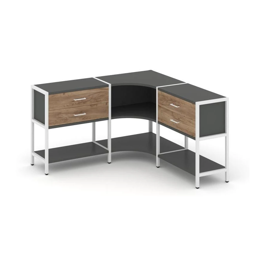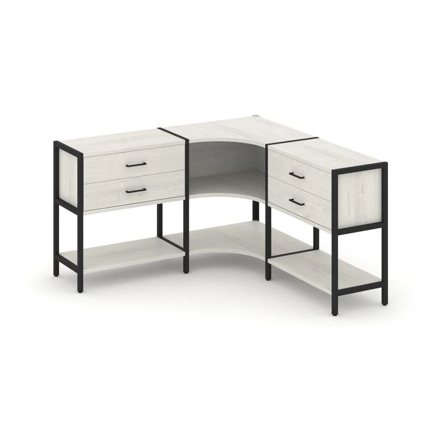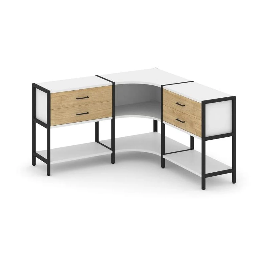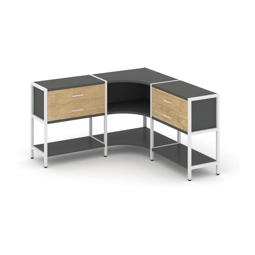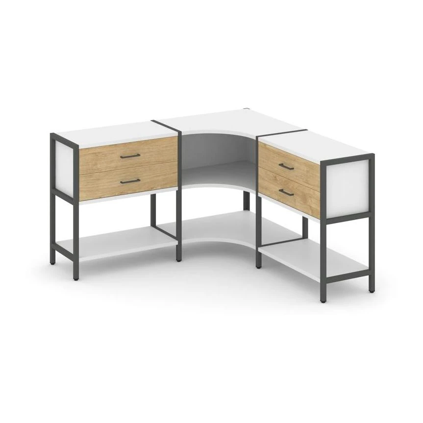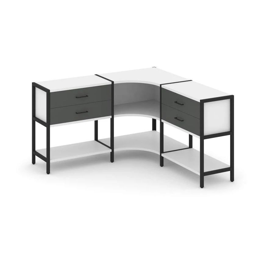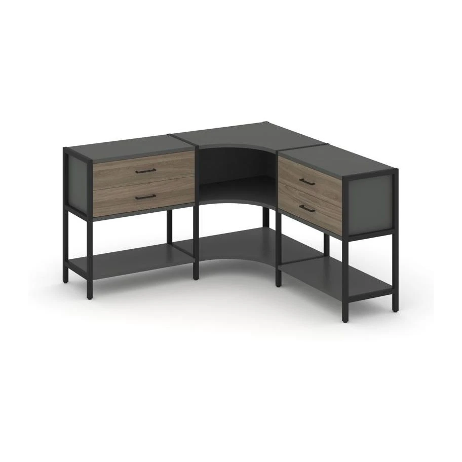 Трехсекционный угловой стеллаж двухярусный с ящиками 1590х1590х879 Шелф Систем / Shelf System