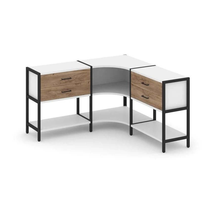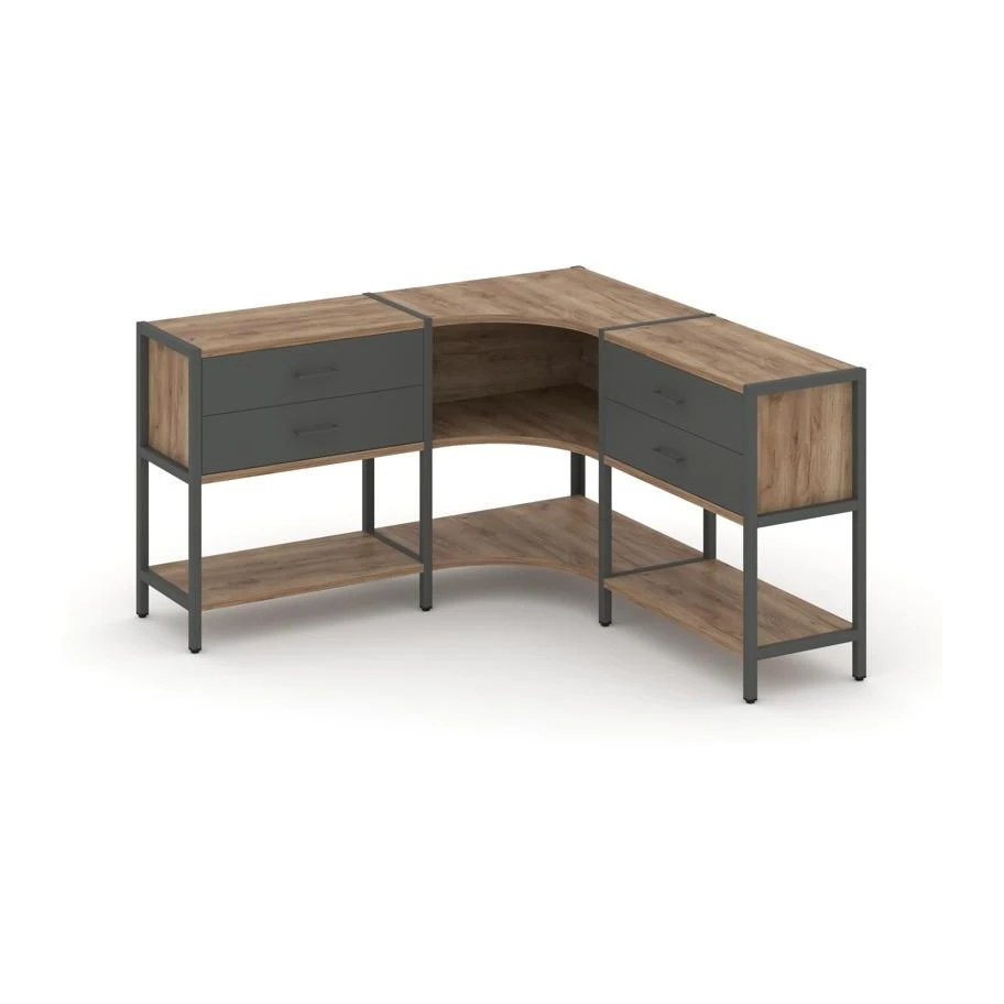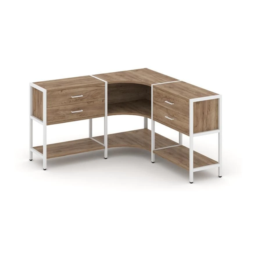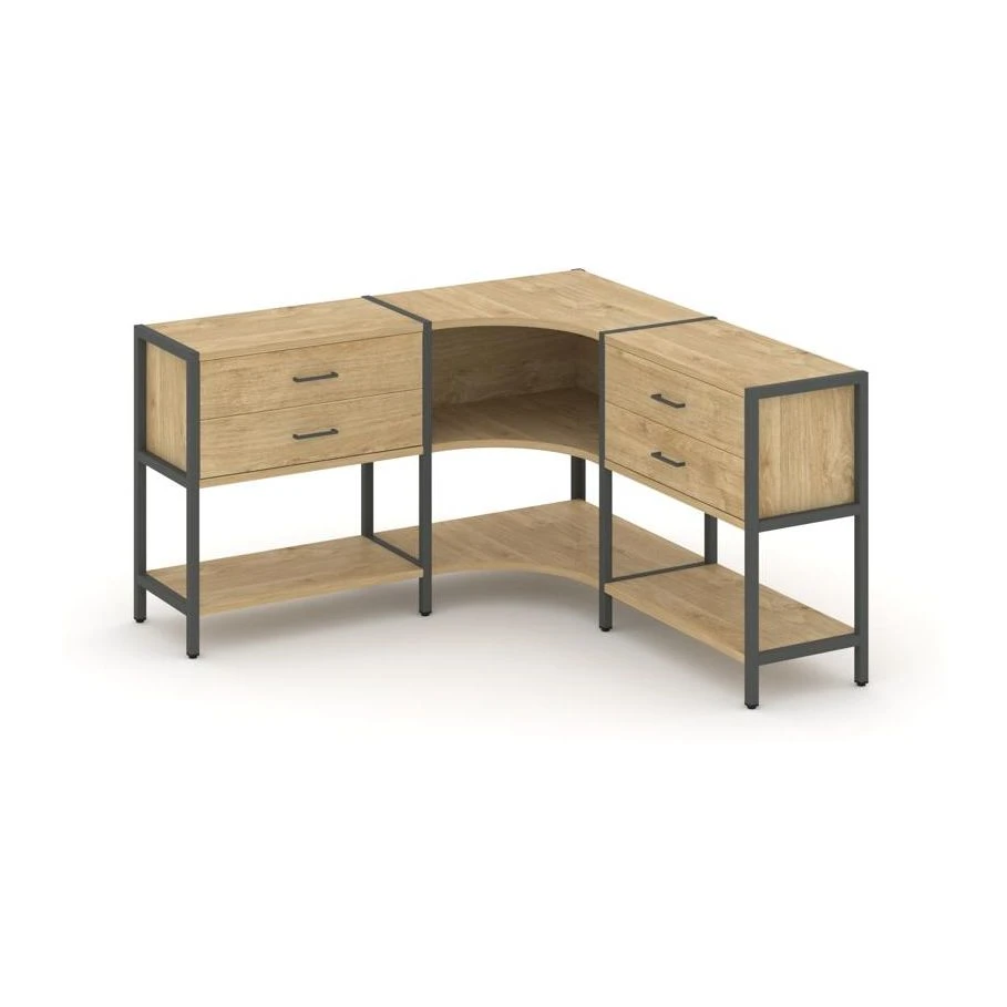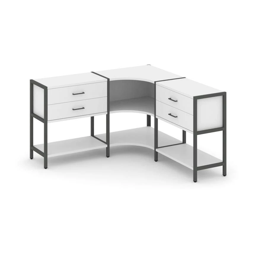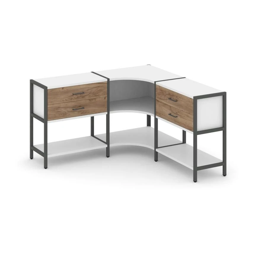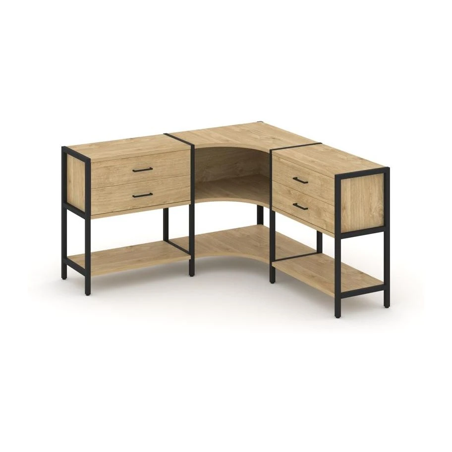 Трехсекционный угловой стеллаж двухярусный с ящиками 1590х1590х879 Шелф Систем / Shelf System
