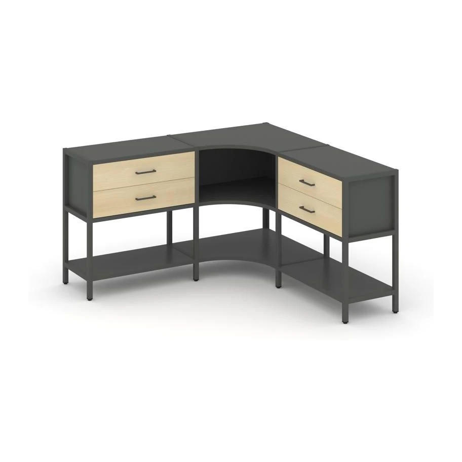 - Трехсекционный угловой стеллаж двухярусный с ящиками 1590х1590х879 Шелф Систем / Shelf System
